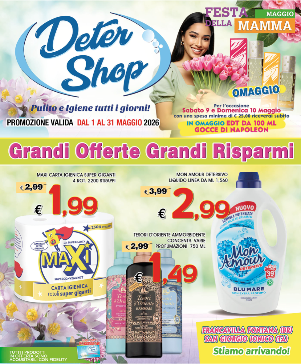 Scegli l’importo, ritiralo alla cassa e rendi unica la spesa di una persona a te cara. Potrà scegliere lei/lui cosa acquistare, in massima flessibilità ed in qualsiasi punto vendita Detershop.